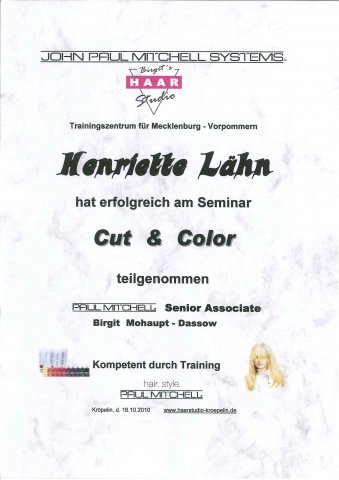 Ein kleiner Einblick in die Auszeichnungen und fachlichen Qualifikationen der Haarschneiderei.